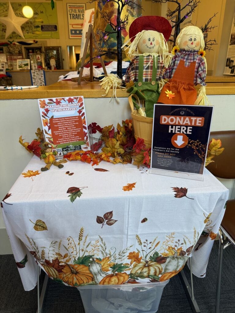 - Drop-off Location: Franklin County 11/30 Visitors Center, 15 South Main Street, Chambersburg, PA.