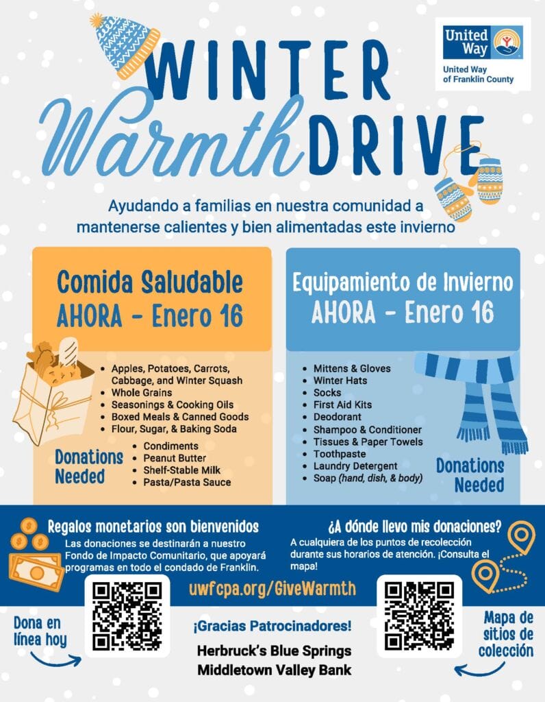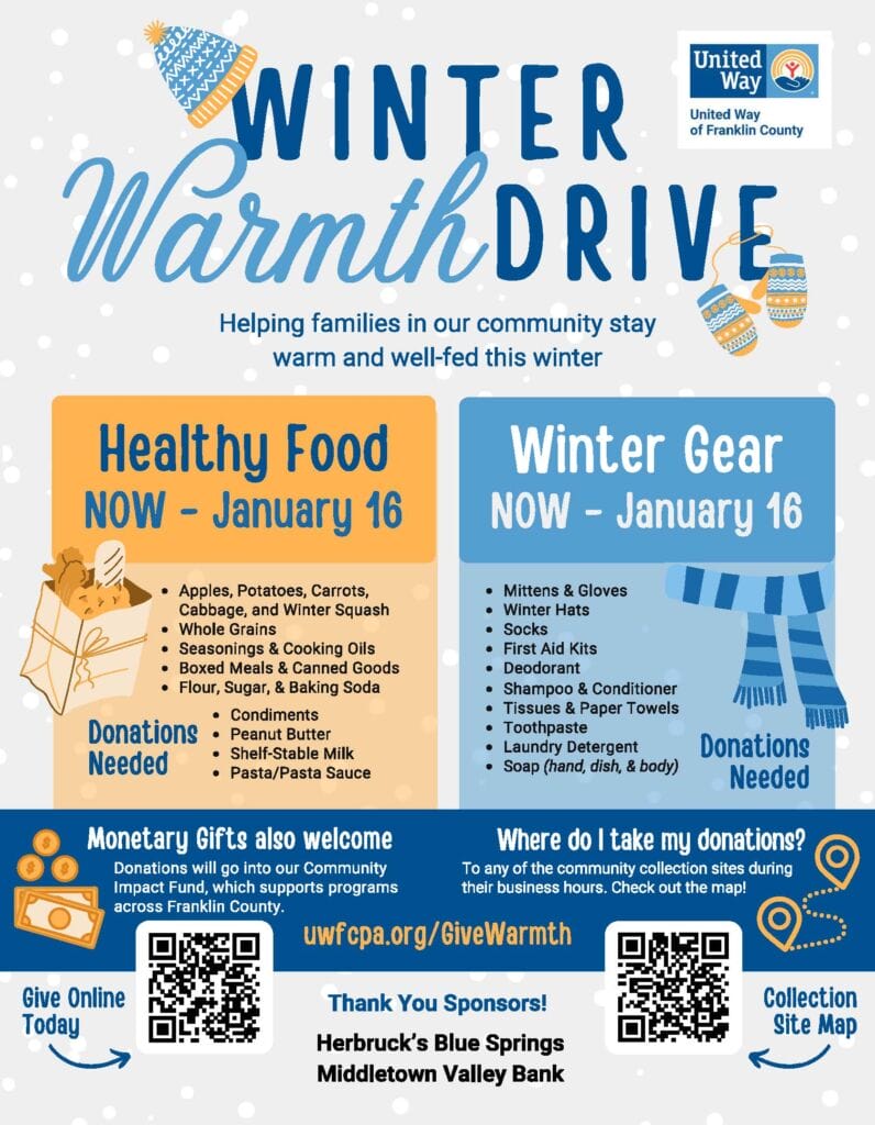 The United Way of Franklin County is stepping up to address the needs of the community during the government shutdown by launching the Winter Warmth Drive. This initiative aims to support families in need by collecting essential items such as food, personal care supplies, and winter gear.